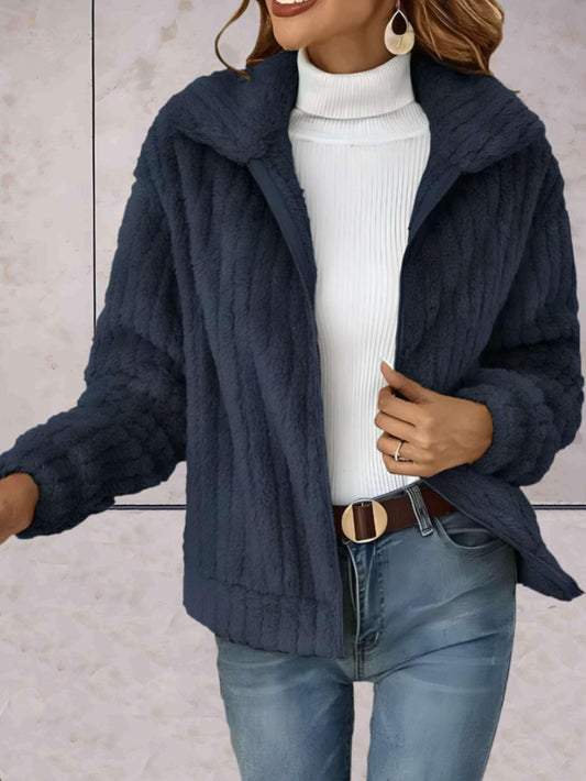 Chaqueta polar de mujer con cuello de polo y cierre de botones