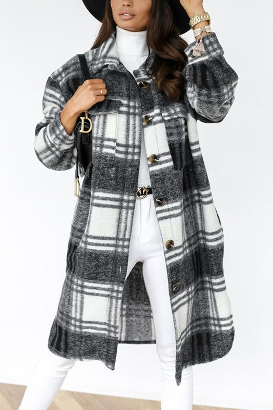 Abrigo Wacine | Abrigo largo de lana a cuadros con bolsillos