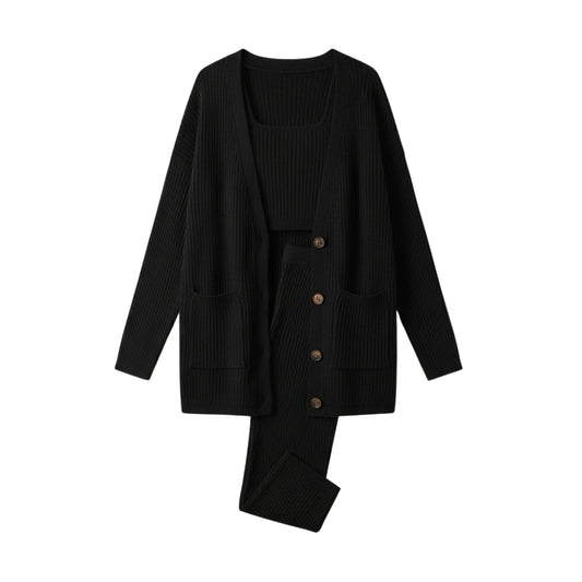 Arden | Conjunto de tres piezas para mujer: cárdigan, chaleco y pantalones