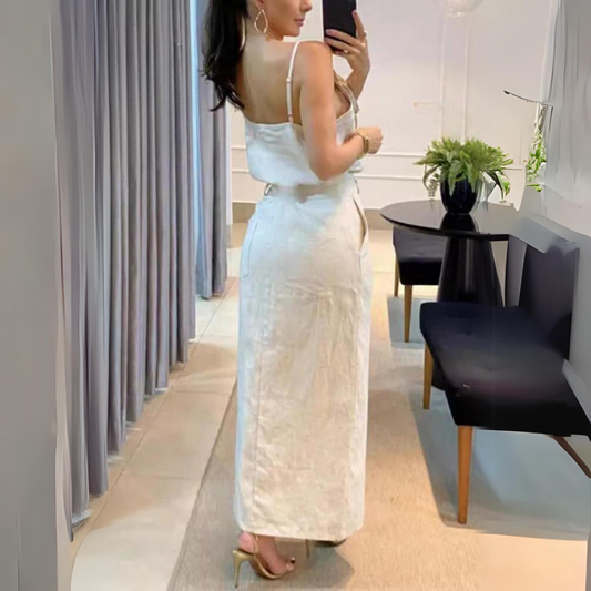 Arlowe - Casual impresión Halter split Tirantes vestidos largos