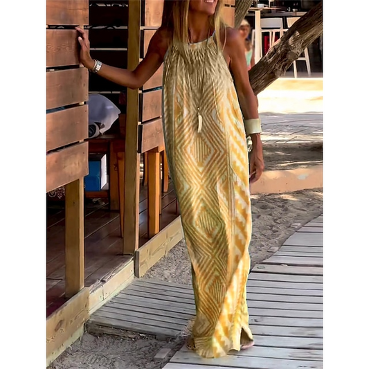 Azariah - Elástico de manga corta Diseño floral Diseño hueco Cuello en U reversible Maxivestido