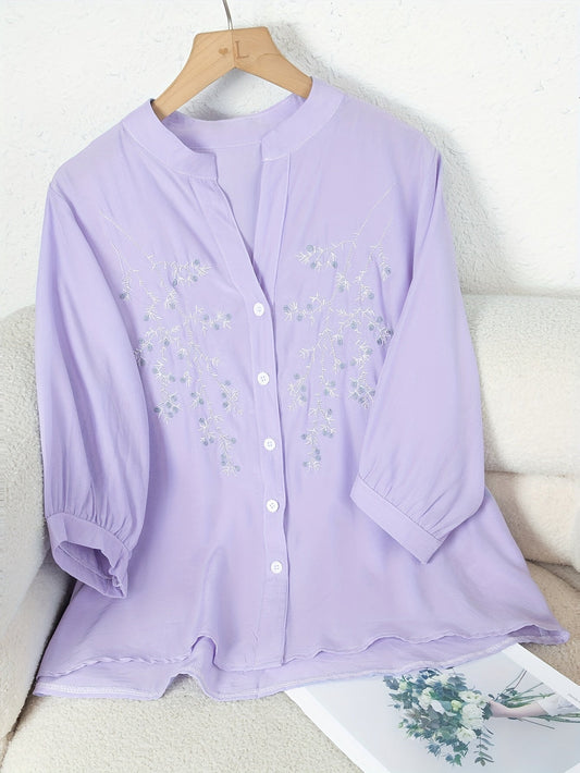 Blusa con motivos florales - Cierre con botones y cuello alzado