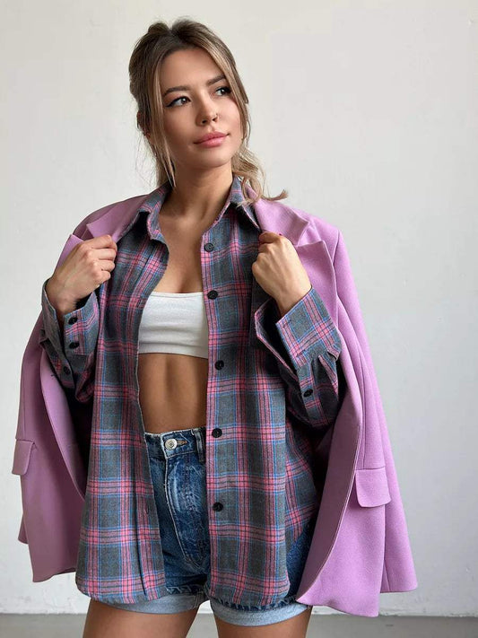 Camisa A Cuadros Con Botones - Diseño Cuello Polo Y Cierre