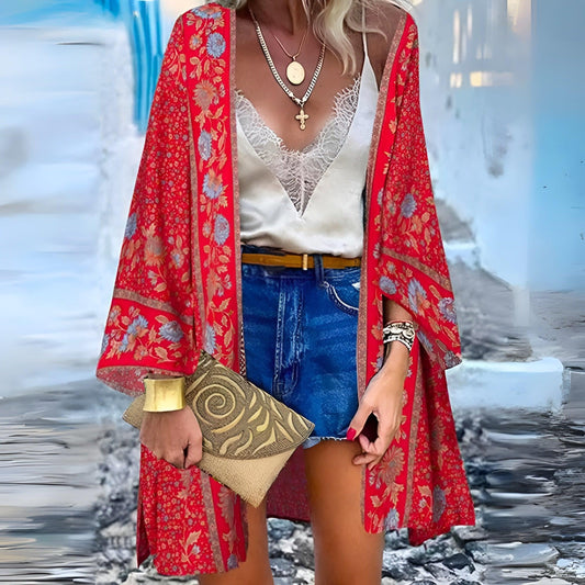 Cárdigan largo con parte delantera abierta y mangas largas para mujer