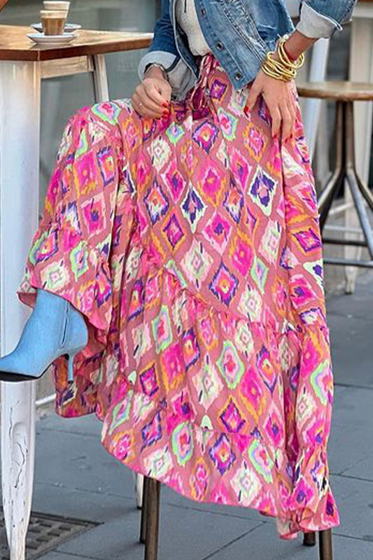 Casual Street Estampado Geométrico Cuello vuelto con cordones Monos sueltos
