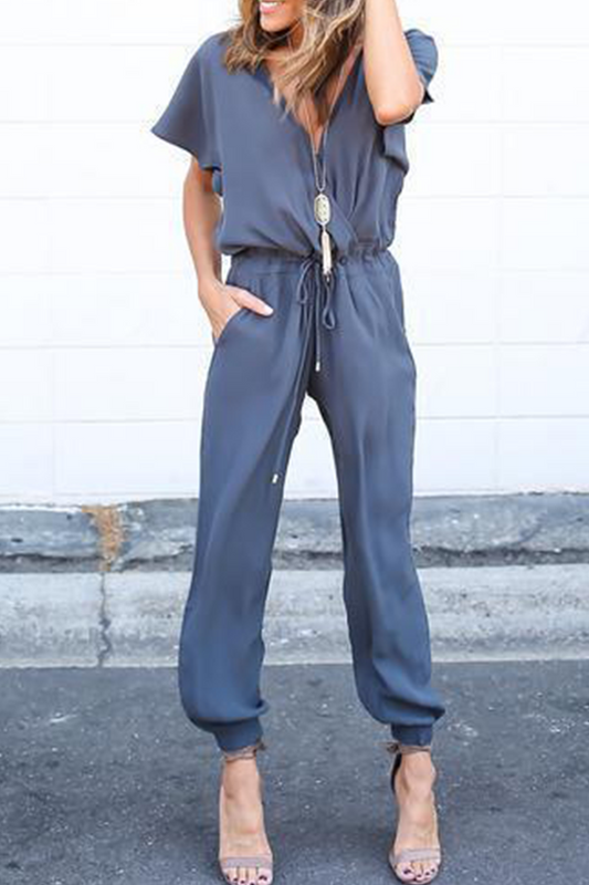 Casual Street Solid Frenulum V Neck Jumpsuits(3 colores)
