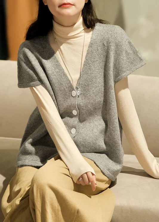 Chaleco Abotonado Beige Cuello V | Manga Corta
