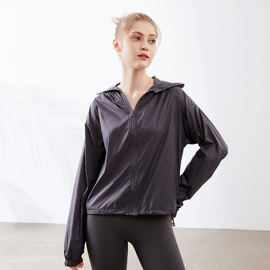 Chaqueta cortaviento para mujer con capucha y cordón de ajuste