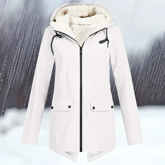 Chaqueta cortaviento e impermeable lisa con capucha y engrosamiento