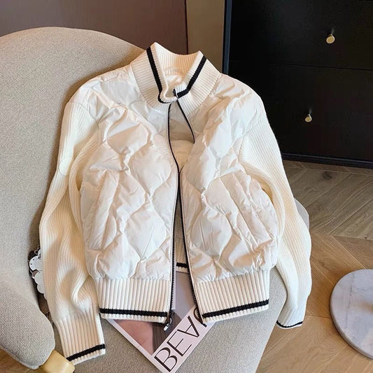 Chaqueta de punto patchwork para mujer | Abrigo acolchado ligero y cálido para un estilo casual