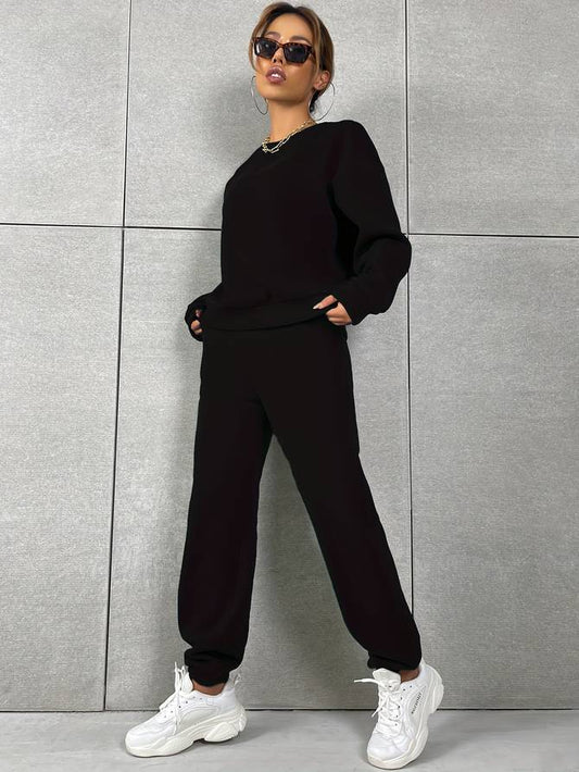 Conjunto de chándal oversize para mujer de 2 piezas, sudadera con polo y pantalón