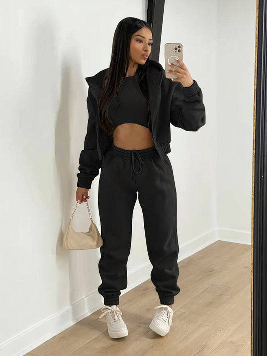 Conjunto de chándal deportivo para mujer de 2 piezas con capucha con cremallera y pantalón