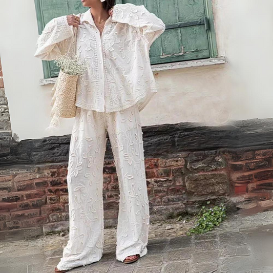 Daniella | Camisa asimétrica pantalón pata ancha