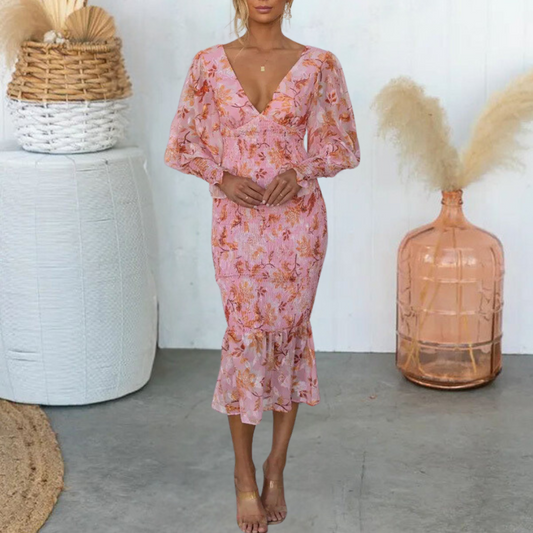 Delfina - Vestido floral con elegantes pliegues