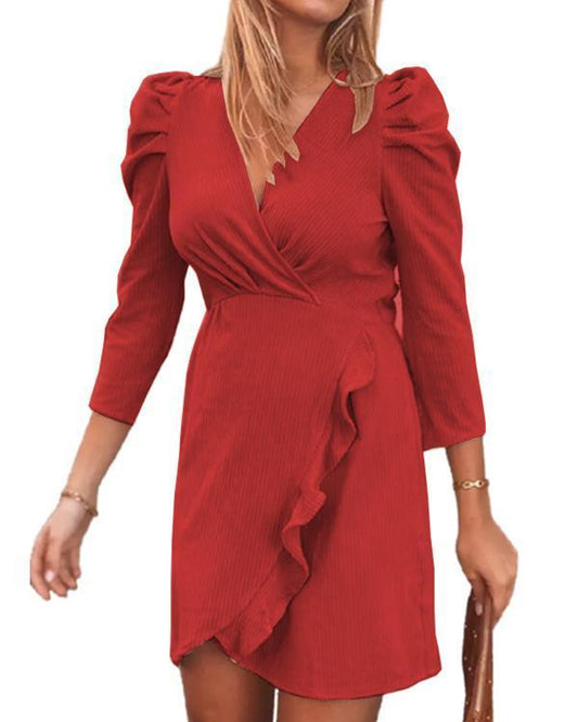 Aletta - Minivestido con mangas bouffant y escote de volantes
