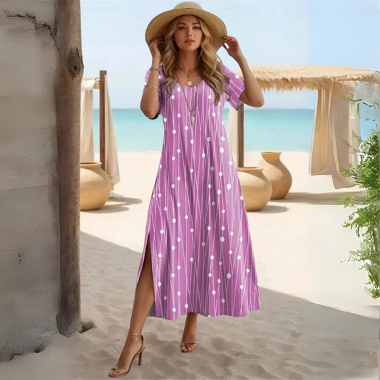 Amaya - Vestido midi sin mangas y cuello redondo con volantes