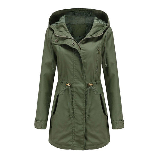 Elegante chubasquero con capucha y cintura ajustable para mujer | Ideal para otoño/invierno