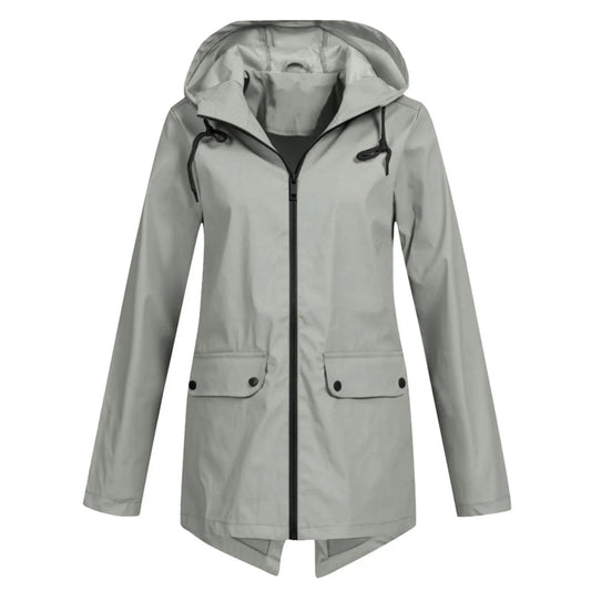 Chubasquero casual impermeable con cremallera y capucha para mujer | Perfecto para otoño/invierno
