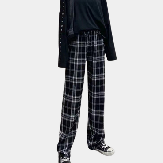 Elegantes pantalones de talle alto y pernera ancha para mujer