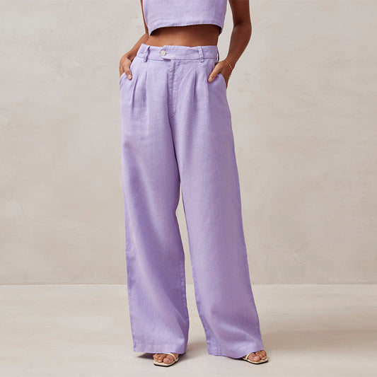 Pantalones de talle alto, rectos y de pierna suelta para mujer