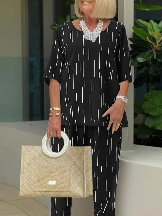 Fashion Striped Sleeves Loose Midi Dress Pantalones cortos