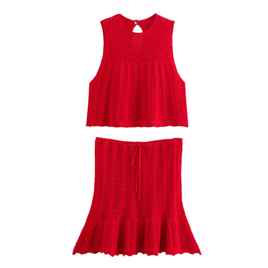 Yadira® | Conjunto de falda y rebeca de ganchillo