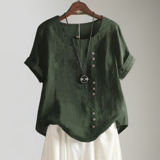 Blusa Lisa con Botones Laterales - Mangas Enrolladas y Ajuste Opaco