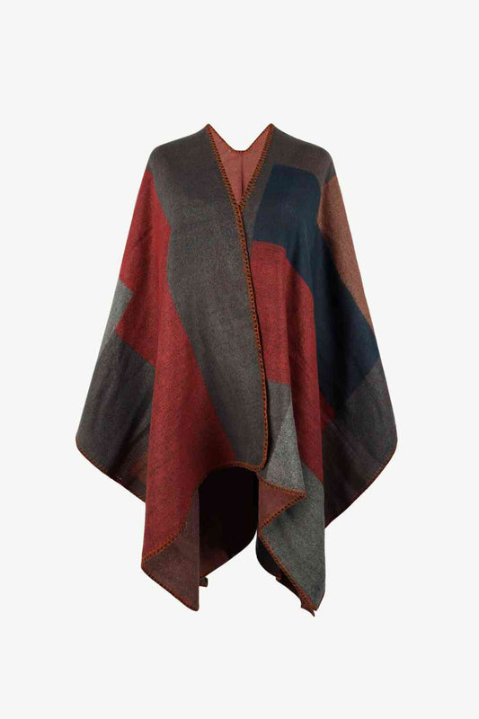 Poncho brillante con parte delantera abierta y paneles multicolores