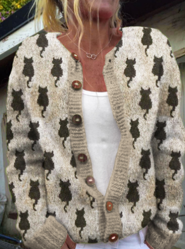 Elegante cárdigan vintage con estampado invernal para los días fríos