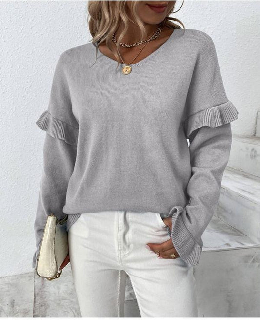 Jersey de mujer con cuello en V y manga pétalo | Colores sólidos