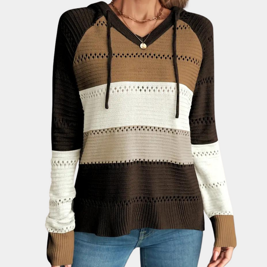Jersey multicolor con capucha y escote en pico para un look elegante