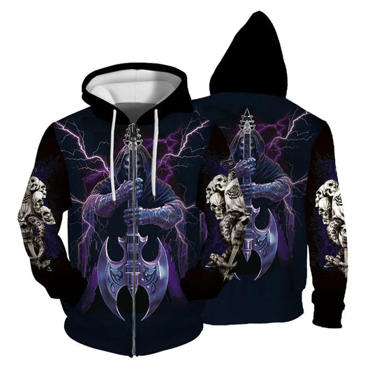 Hunter | Sudadera con capucha y cremallera para hombre con motivo de calavera