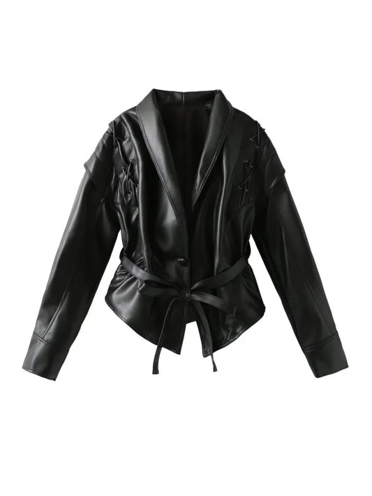Madonna | Cazadora de cuero con cinturón | Estilo crop