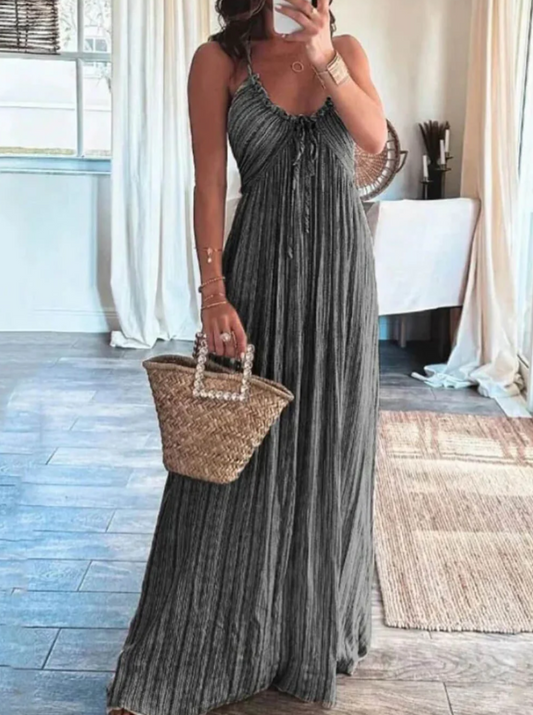 Margovil maxi vestido de lino sin mangas con cuello en V y volantes
