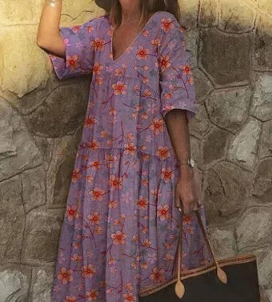 Vestido maxi de corte holgado con estampado floral y escote en V