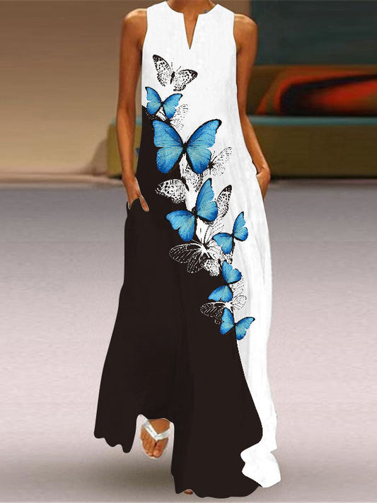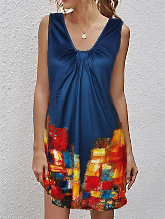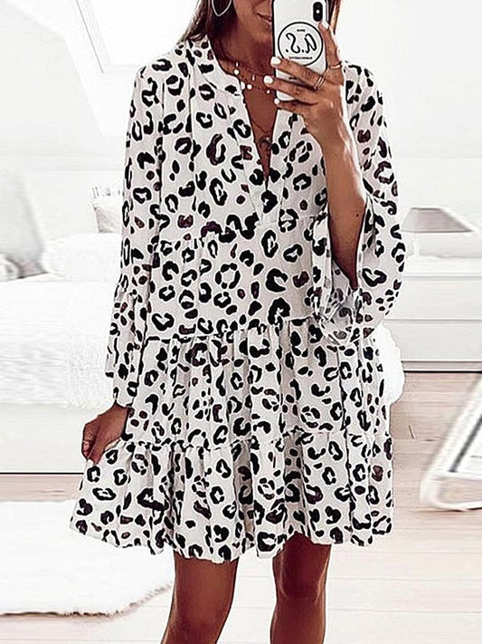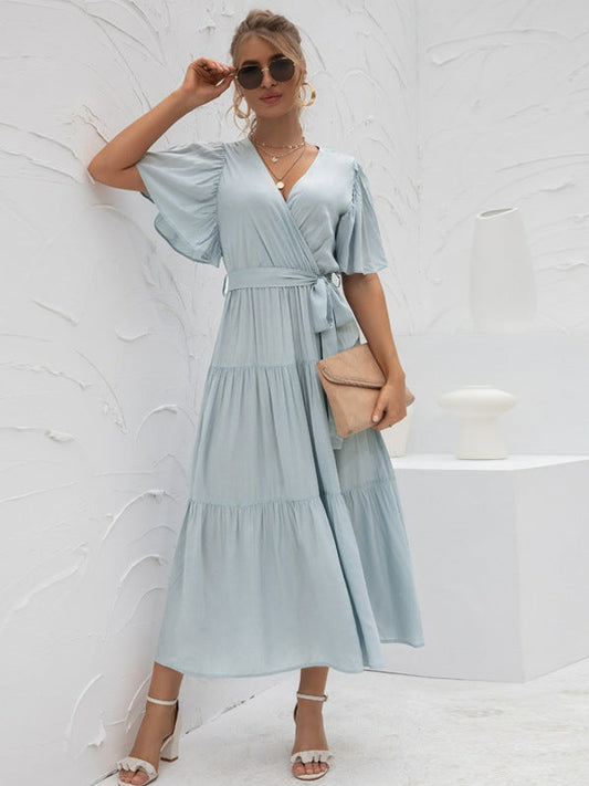 Vestido de gasa con cuello en V ondulado y mangas cortas