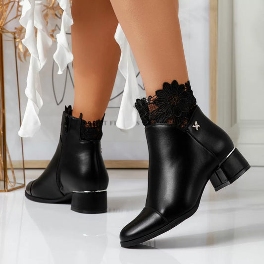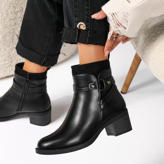Botas de mujer con hebilla metálica de piel auténtica y lana