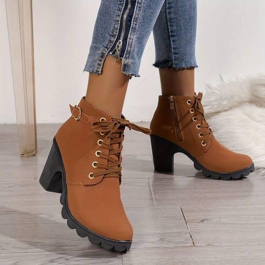 Nikki Boots | Botas de media caña con cordones y plataforma con cremallera lateral