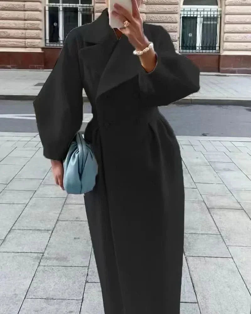 Abrigo de doble botonadura con mangas oversize y corte entallado para mujer