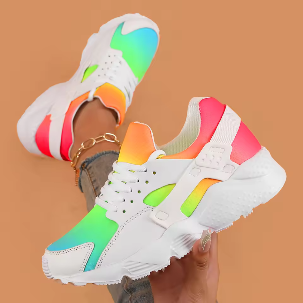 Experimenta la fusión perfecta de estilo y comodidad con estas zapatillas, diseñadas para mujeres que aprecian las cosas buenas de la vida. Fabricadas con materiales suaves y naturales, ofrecen un toque delicado a cada paso. Los colores del arco iris no sólo son llamativos, sino que también sirven como símbolo de versatilidad, lo que las convierte en la opción ideal para cualquier ocasión. Tanto si vas a hacer recados como si has quedado con tus amigos, estas zapatillas elevan tu look con facilidad y gracia.