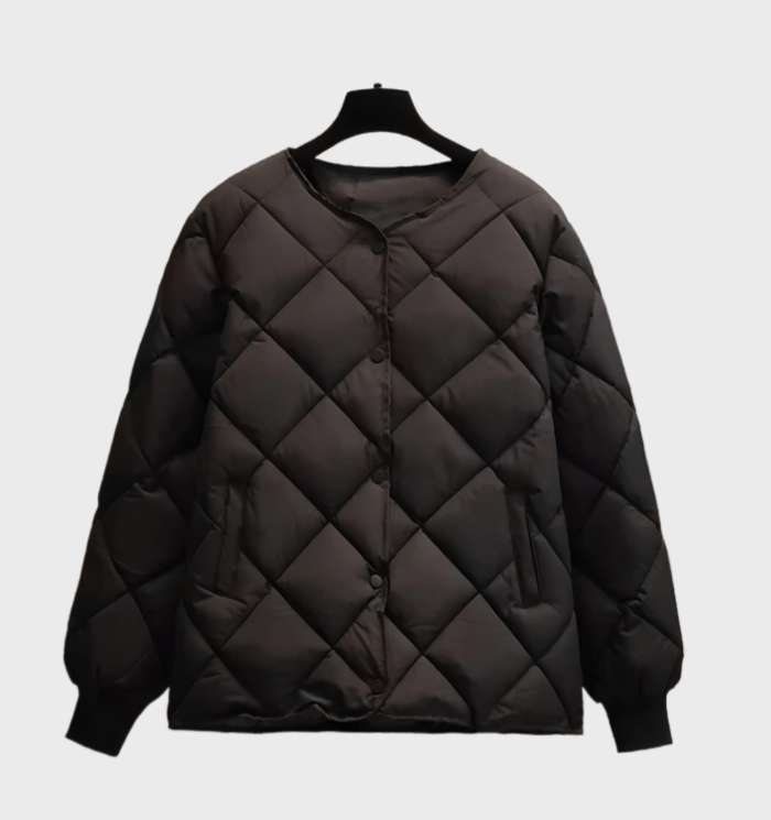 Chaqueta de mujer con cuello de pico y cierre de botones