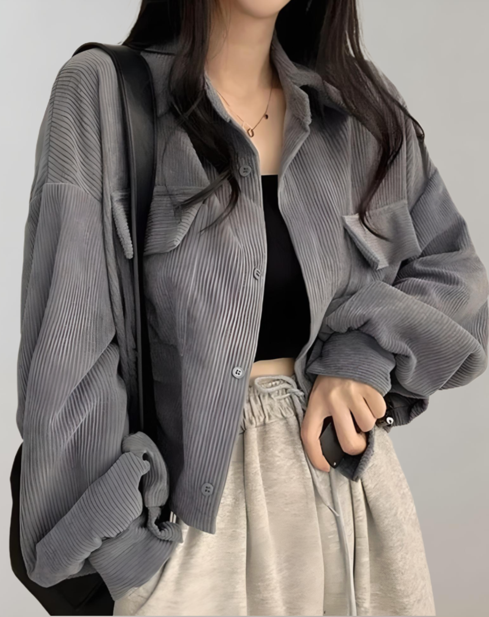 Chaqueta grande con bolsillos en el pecho para mujer