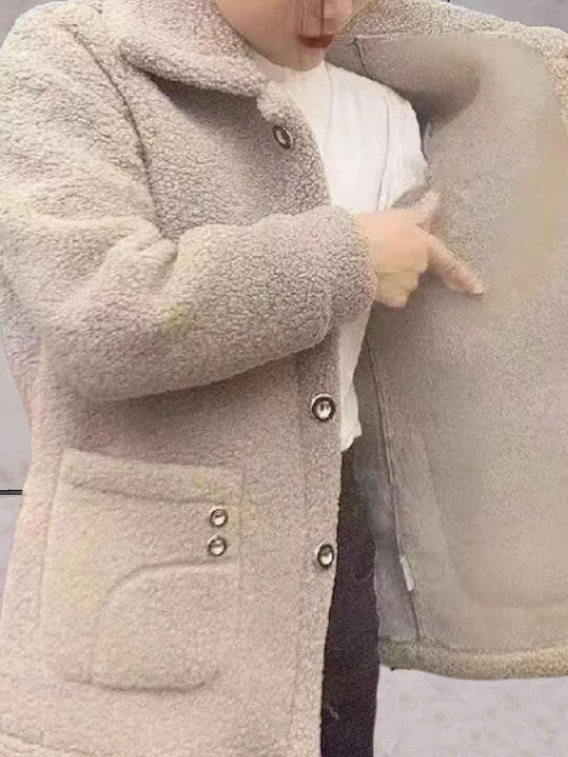 Chaqueta polar de mujer con cuello de polo y cierre de botones