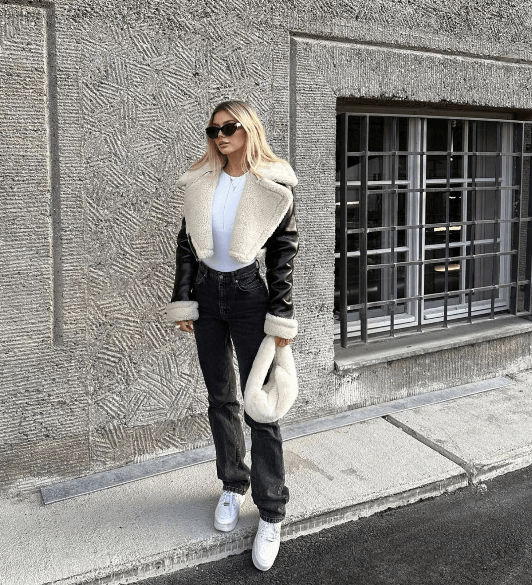 Chaqueta de lluvia | Chaqueta de cuero con forro de piel sintética