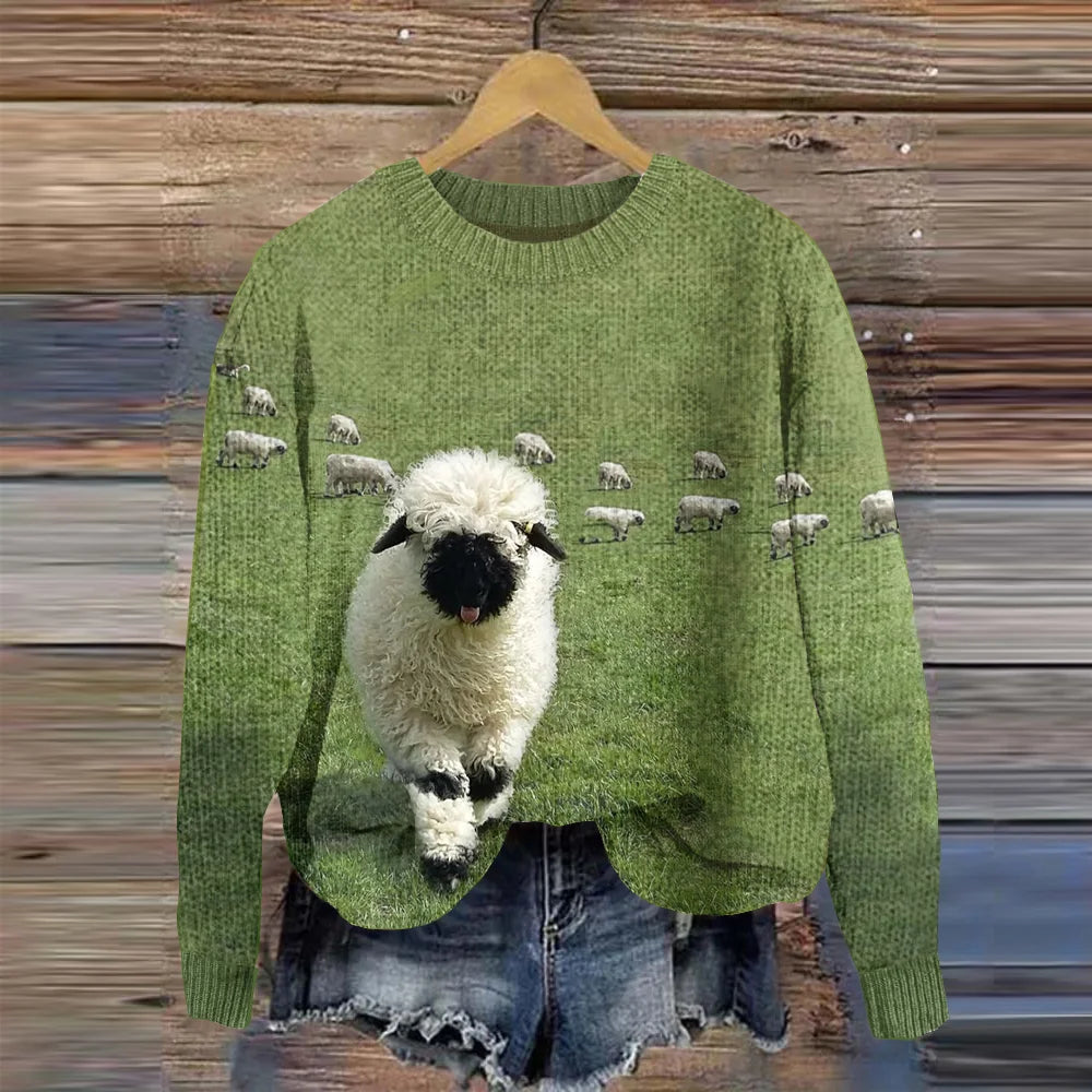 Acogedor jersey de punto con cuello redondo y estampado Stray Sheep