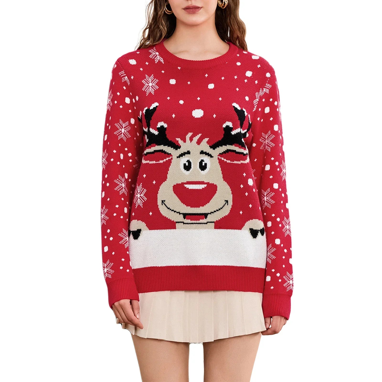 Rudi | jersey de punto con escote redondo y estampado navideño de renos para hombre y mujer