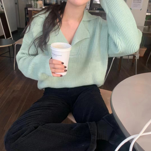 Jersey de invierno Laure con cuello de pico - Cómodo y elegante