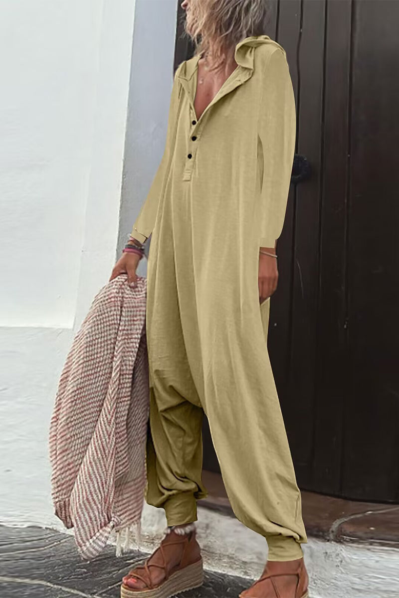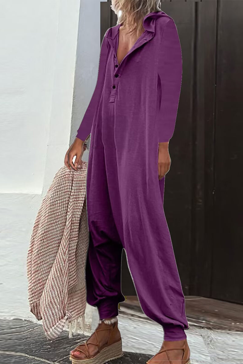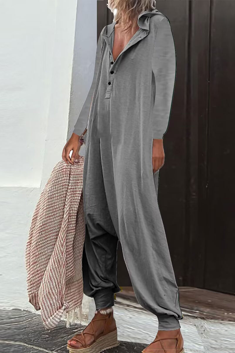Casual Solid Buttons Hooded Collar Loose Jumpsuits (8 colores)