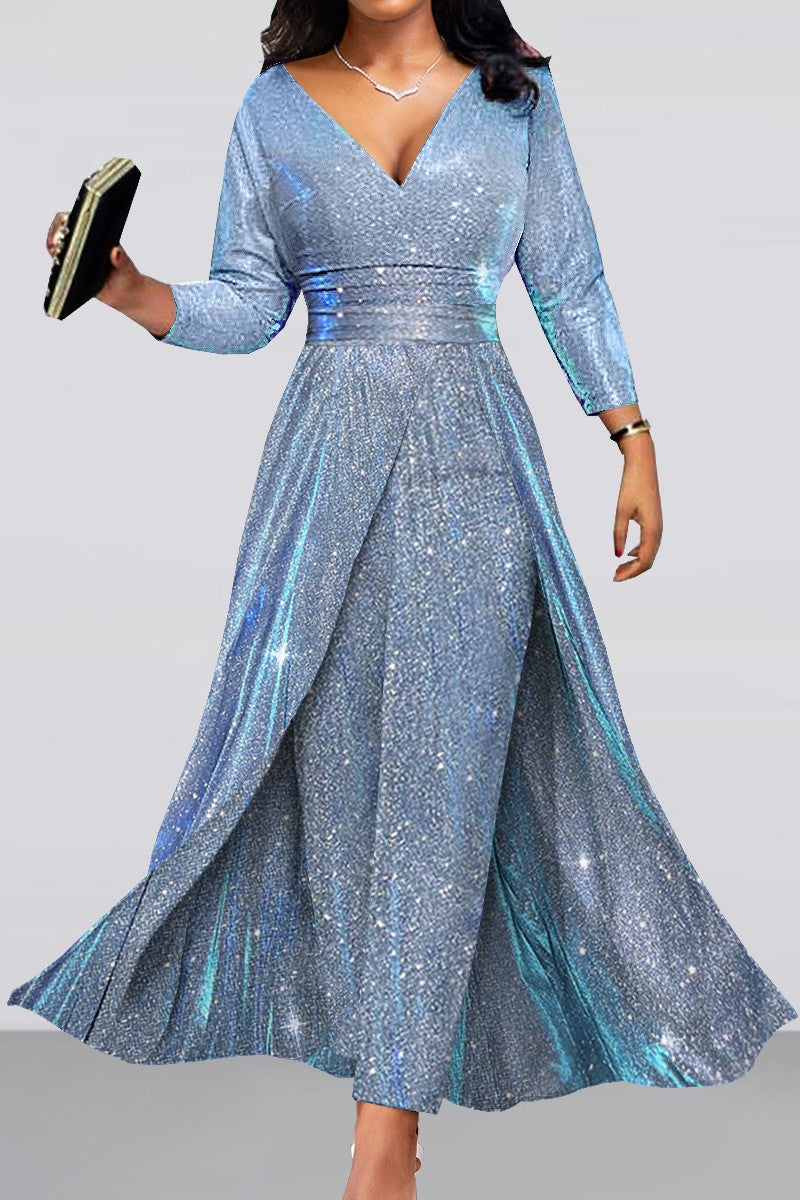 Casual Bronzing Patchwork V-Neck Skinny Jumpsuits