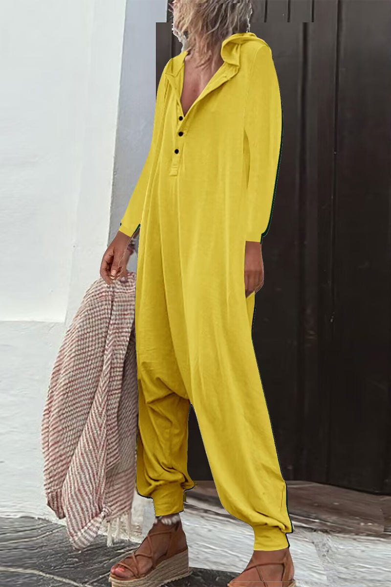 Casual Solid Buttons Hooded Collar Loose Jumpsuits (8 colores)